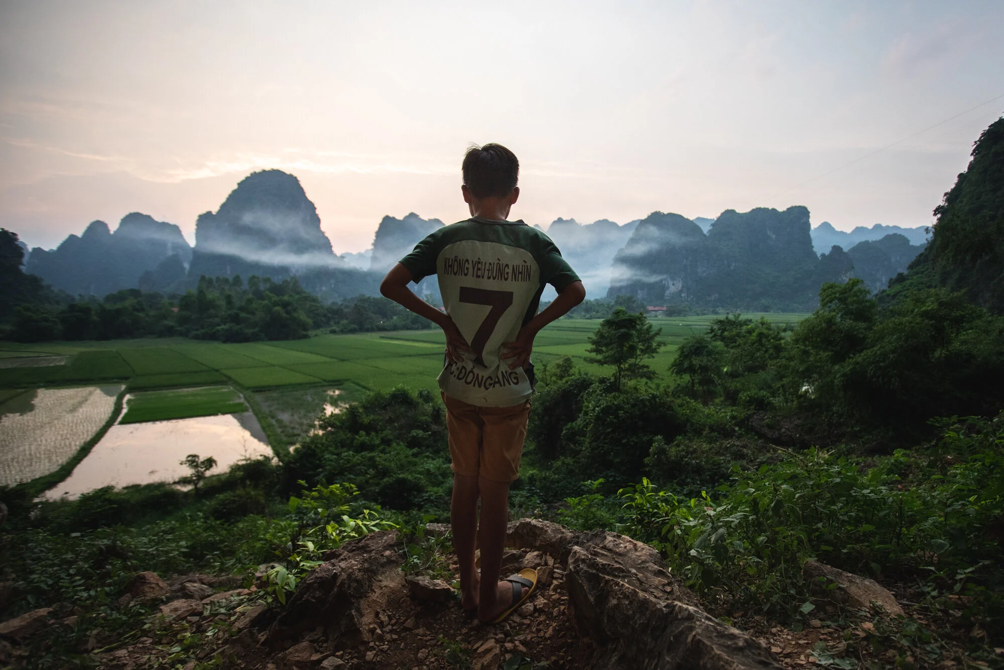 A view of the limestone cliffs and rice fields of Hữu Lũng from one of the main climbing walls in the area. Hữu Lũng is about 120km north of Hanoi.